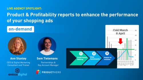 Discover how you can use Product & Profitability reports to enhance the performance of your shopping ads. In this session, Ann Stanley, CEO at Anicca Digital, will share how they optimize e-commerce campaigns by diving into a case study. This is a great session for those who want to make the most out of their shopping ad campaigns on Google.