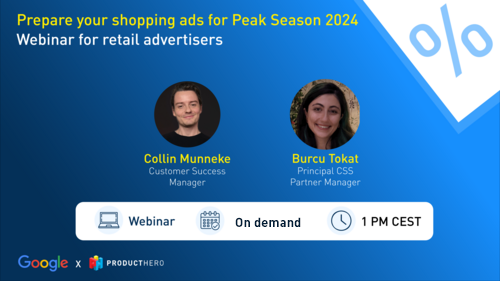 Together with Google, we are organizing a webinar about Peak Season 2024. Get answers to your questions about shopping ads on Google. Burcu Tokat will share the latest industry trends, and Collin Munneke will take you through the Peak Season guide and checklist to help you prepare!